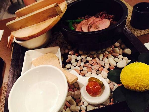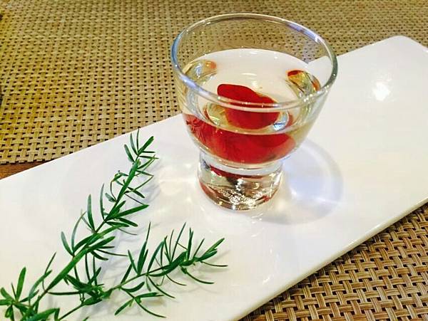 用餐前先上的開胃醋飲料,相較於一般餐廳類似飲品口味較重的設計,緩慢民宿提供的口味較淡,在酸味以及甜味之間非常平衡,基本上連不喜歡喝醋的人都可以接受。這邊先提醒一下,緩慢民宿的晚餐,每道菜管家都會很詳細的說明這道菜的故事,千萬不要像我一樣,一上菜,就急著一口把開胃醋喝完,就失去的邊聽故事,邊享受美食的樂趣喔 XD。