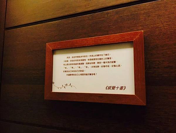 最後附上一張照片,就是當天我們住宿時,在房間門口門上的一段話送給大家:"你已經多久沒有傾聽自己內心深處的聲音了?" ,我想這就是緩慢民宿主人希望大家來這裡住宿都能達到的目的,透過徹底的放鬆達到心靈的平靜,更靜下心的聽聽自己心裡面的聲音,相信再難解的人生習題,都能夠靠自己找到方向!