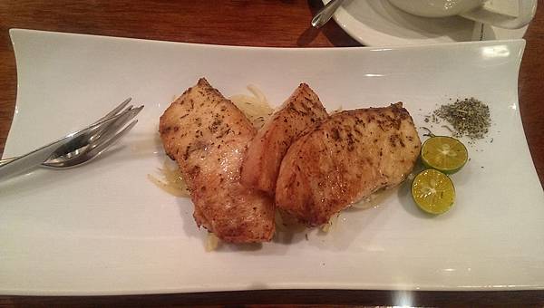 說實話,就食材而言,旗魚真的不太算太高檔的東西,不過往往料理的功力,就在透過不會喧賓奪主的配/調料,把食材的美味,發揮到極致,基本上我覺得這道菜已經做到至少90分了,恰到好處的火侯,要烤的方式,帶出旗魚油脂的香,卻又不會太油膩; 鋪在底下的炒洋蔥,則是適當地扮演好配菜的角色,除了帶出香味味,微脆的口感,也能跟旗魚做相當不錯的搭配,喜歡吃魚的朋友們,如果有到文森餐酒館,一定要嚐嚐這道料理。