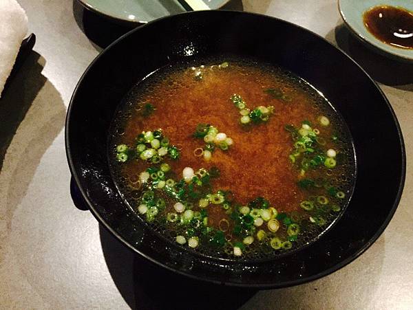 我應該算是味增湯的愛好者,基本上只要吃日本料理,只要是有單點的湯品,我就一定必點味增湯,在家中自己下廚時,因為不太會做料理,基本上也很愛在煮湯時,加進一匙味增,基本上喝起來的湯頭就不會太差。不過在丸壽司,老闆端上的味增湯湯頭的味道,就是我從來沒喝過的味道,簡單說,比起外面賣的味增,甜味少了一些,但多了魚和柴魚片的高湯味,另外,老闆也特別強調他用的味增,是正統的日本味增,在其他的餐廳很不容易吃到。