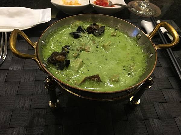 前菜的青醬田螺,有兩個要提的點:第一點是佐醬的濃淡非常適中,從份量上來看,我反倒覺得比較像是湯品,而不是單純的佐醬,就算是當湯全部喝完都ok。第二點是佐醬內的食材部分,除了很有口感的田螺肉外,很特別的是,吃的到一粒粒口感有點像是堅果粒的起司,讓口中咬起來的層次更豐富,不過不太確定為什麼起司粒放進溫度不算低的醬料內,為什麼不會融化? 猜測犇鐵板燒微風信義的廚師將起司粒放進醬料的時間,應該需要抓得非常精準。