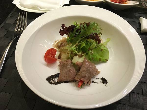 另一道前菜的生菜牛肉捲,半熟牛肉充滿了非常誘惑人的肉汁,搭配上紅黃椒的鮮脆,咬在口中時,無論是口感或是味蕾都能得到很大的滿足。