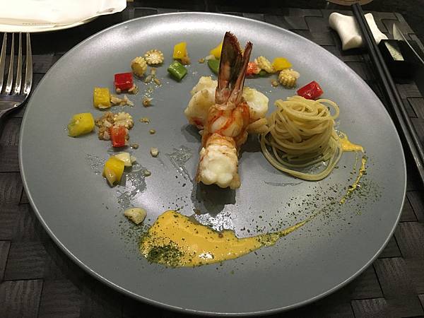 大明蝦這個食材只要新鮮,實在是很難不好吃。不過真的要大大的誇讚犇鐵板燒微風信義的廚師在火侯方便的功力,完美的料理時間,讓明蝦肉在口中吃起來多一分太硬,少一分則太軟,極富彈性的口感真的是回味無窮。唯一覺得有些不習慣的是搭配的義大利麵的鹹度,可能是因為明蝦在料理中是以原味呈現,因此在義大麵的調味部分,稍微比較重了一些,應該是想中和兩者間的味道。不過瑕不掩瑜,光是第一道副主菜就讓人驚艷。