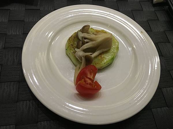 主菜吃完後,犇鐵板燒餐廳則會附上一道蔬菜創意料理。這道菜以多汁的絲瓜作為基底,配上香氣四溢的鴻喜菇,再加上一點味道稍稍偏重的番茄。雖然都是非常平凡的食材,但搭配起來除了很清淡爽口外,絲瓜和番茄的多汁,某種程度也代替的台灣人喜歡在飯後喝湯的習慣,算是很舒服的正餐結尾。