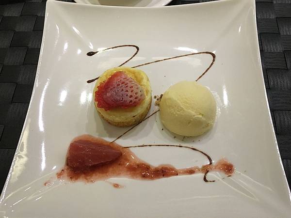 冷凍過後的草莓,搭配香草冰淇淋以及香味濃郁的蛋塔,三種看起來不太搭軋的甜食,因為同時有微酸/甜的口味+酥的口感,搭起來反而讓嘴巴裡有種"很多層次"的感覺。也由於犇鐵板燒餐廳利用水果和醬料的微酸,巧妙的中和了其他食物的甜,我覺得就算不喜歡吃甜食的朋友,對於這道料理的接受度應該也會很高。