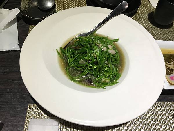 在套餐之外,女王和我另外加點了一道炒水蓮。水蓮特有的咬勁和口感就,只要蔬菜食材本身夠新鮮,簡單炒熟就已經很好吃,松築創作和食料理在料理的部份,也只用一點點的蒜頭搭配增加香氣,建議喜歡蔬食的朋友們,到這家餐廳可以點這道菜來吃看看。