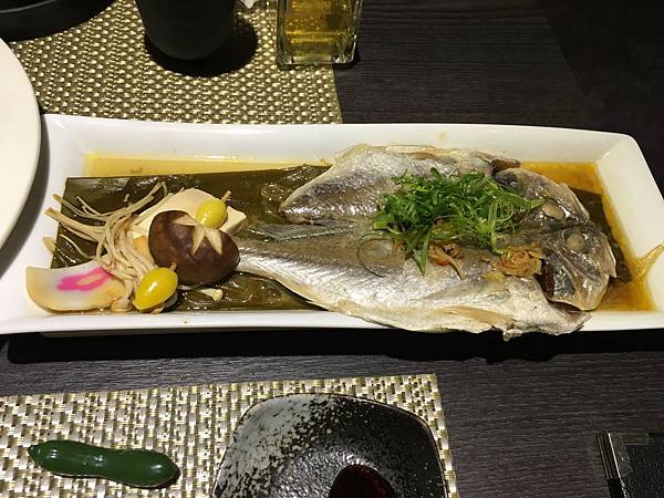 鮮魚料理則又驗證了"新鮮就是無敵"這句話,完全沒腥味的食材,蒸煮程度掌握的剛好的料理方式,讓這道澎湖季節鮮魚的鮮嫩口感完全的發揮。更特別的是,從魚肉的底下,看到了一片植物的葉片(非昆布),雖然不確定這是哪種植物的葉片,但可以確定應該就是這個葉片,讓魚肉的香味更被凸顯出來。不過好吃的魚大多數魚刺會比較多一些,吃的時候速度建議可以放慢些,除了更能享受料理的美味外,也能避免魚刺不小心卡住喉嚨的狀況。