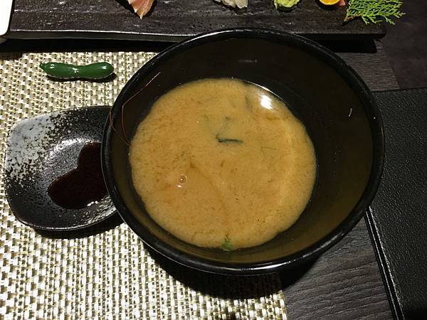 套餐所附的味噌湯,基本上就是道很"味噌"的湯品。他的口味是屬於味噌味較重的那種,再搭上一點點的昆布味,如果你是喜歡日本傳統味噌湯做法的人,相信一定會喜歡松築創作和食料理的味噌湯。