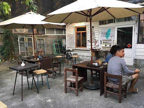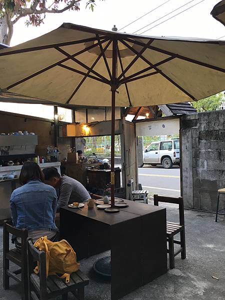 Giocare Cafe的用餐區算是非常簡單,就像是在一個平房人家的院子,擺上幾張板凳讓客人隨意就坐。唯一看起來有一點點"營業場所"的感覺,就是在座位上方的大陽傘,不過這種開放式的座位,就算是有洋傘,碰到下大雨或是夏天日中當中的時候,還是很難愜意的在這裡享受咖啡,在這種天氣狀況下外帶或許是比較好的選擇。