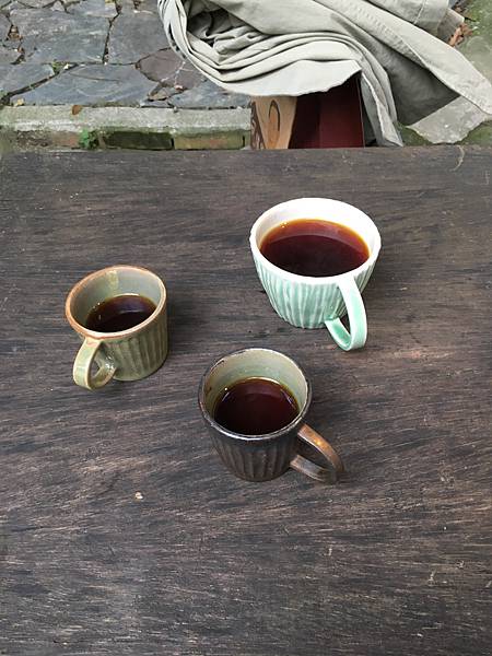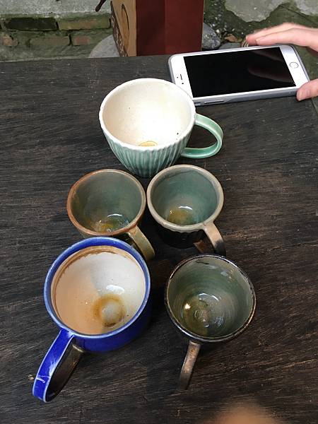 如果像女王跟我和另一位朋友前往樹人街Giocare Cafe的當天,同樣運氣不錯的話,還會機會能夠免費喝到店家自己在試沖的手沖單品,以上照片就是當天連同我們自己點的和店家免費請我們試喝的所有咖啡杯 (因為女王不能喝咖啡,因此兩個人在一個下午喝那麼多咖啡真的有點多,不過還蠻過癮的…..)