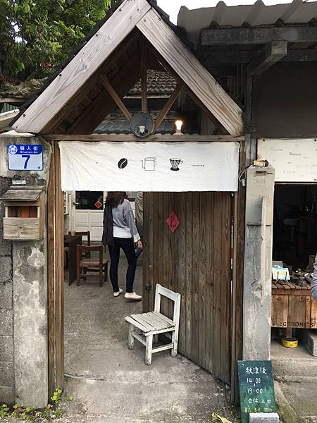 Giocare Cafe店家的門口,無論是門框或是招牌的材質都斑駁陳舊的十分有特色,唯一看起來有些格格不入是上圖這個看來很新的樹人街門牌(要不要考慮故意把他磨舊一點)。