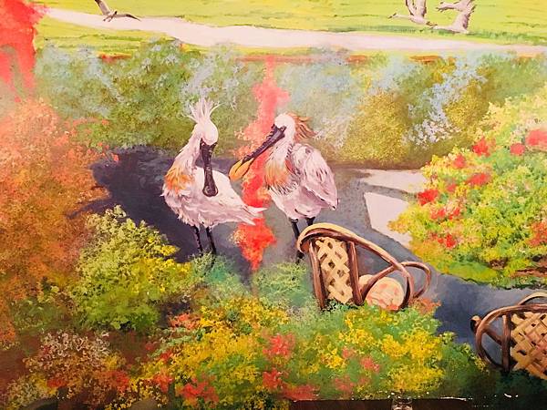 個人很喜歡水鳥52號餐廳店內用餐空間牆上的這幅話,雖然還沒有機會跟店內工作人員請教這個畫作背後隱含的概念,不過光是鮮艷的配色以及很有意境的構圖就非常吸睛。