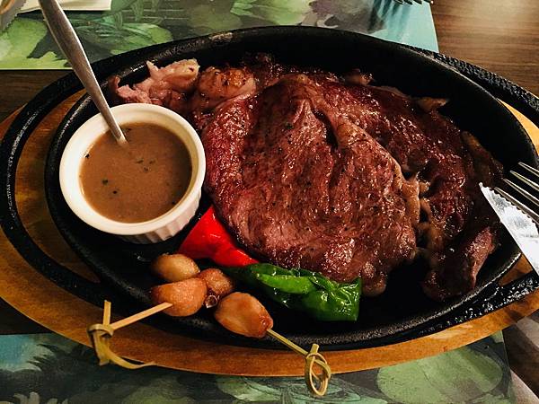 跟大家推薦的第一道主餐是沙朗牛排,雖然從圖片上看起來,水鳥公園52號餐廳的牛排的擺盤好像有點像夜市的平價牛排,可是只要吃下第一口,你就是馬上吃出完全不一樣的美味:高檔牛排獨有的鮮嫩口感,帶有一點點微甜的肉汁,讓每一口咬下都是莫大的享受。另外也建議大家如果點這道牛排料理的話,一定要試試五分熟的熟度,保證能讓這塊牛排的香甜風味發揮到極致。