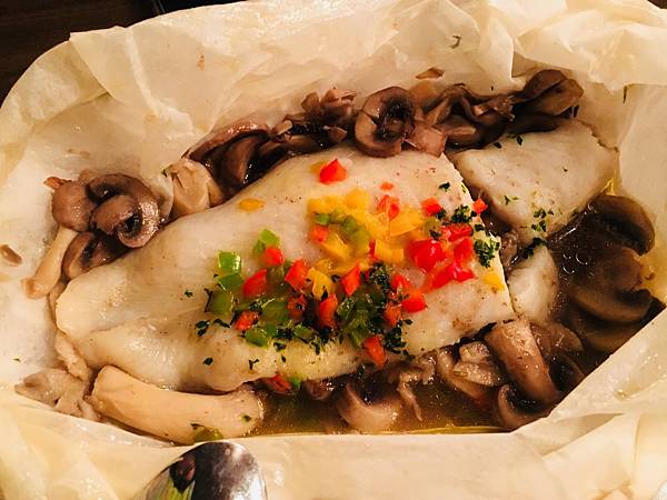 魴魚料理則是女王跟我推薦的另一道必點料理:入口極化的柔嫩口感,讓咬下第一口之後就被這道美食完全的征服,再加上主廚透過各式蔬菜以及鮮菇的搭配調味,讓來訪的客人能夠在這道料理中享受到更多層次的口味。大大推薦!
