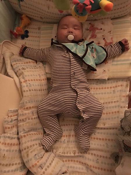 以小雞腿來說,他從出生3個月後開始,就處於一種"折磨阿媽&爸媽"的可怕狀況,白天從大概早9:00到傍晚5:00左右,大概是他的主力睡眠時段,在這段時間內,除了中間會醒來喝個1-2次奶外,其他時間就算一群人在旁邊大聲聊天都吵不醒他,算是處於一種超熟睡的狀況。不過一到了太陽西下,屬於夜行性作息的小雞腿就會慢慢清醒過來,雖然晚上後他每隔2-3小時還是需要睡覺休息,不過基本上每次的睡眠都是"小睡一番",大概睡不到1-1.5個小時就會醒來。最可怕的是因為小雞腿晚上的精神特別好,只要是他醒來的時候,就會吵著要大人陪玩,或是不斷拍床吸引大人的注意,而在這幾個月的晚上,不管是長輩或是女王/我帶小雞腿睡覺,想要有"稍微"連續的的睡眠 (ex. 2-3小時 ),說是緣木求魚其實一點也不誇張。