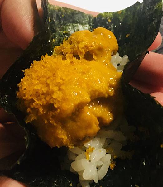 今天用餐的高潮則是釉 YU RYORI NIPPON 日本料理餐廳在特定期間才有的回饋料理: 紫海膽。這個超高檔食材,其實不需要太多的調味,只要透過壽司飯與海苔的搭配,就能吃出滿滿的新鮮海味,另外在口味上則依然維持整個用餐過程一貫的淡雅風,絕對夠味但也能舒服的讓味蕾享受典雅的海鮮口味,大大推薦。