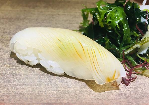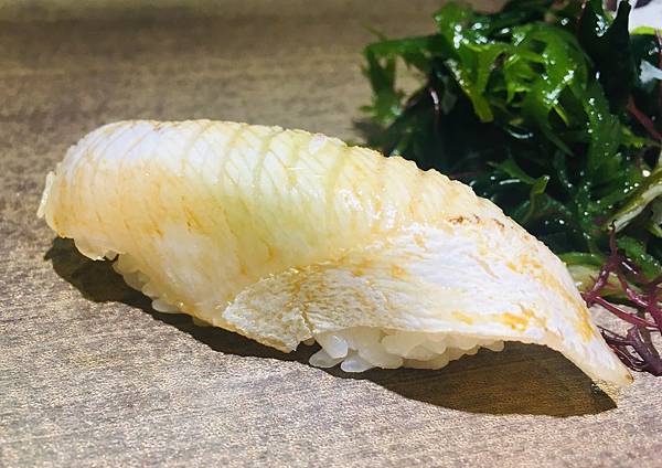 而在各式精緻握壽司部分,我最敬佩主廚的就是他在餐點上展現的精緻刀工及依據各式海鮮食材的特性所調整出最適合的風味: 第一點是精緻刀工,相信很多朋友都有類似的經驗,在日本料理店享用餐點,偶而就是會覺得生魚片好像切得太薄,口感上無法獲得滿足; 偶而又會碰到切得太厚,無法完整體驗食材的最佳風味。而在釉 YU RYORI NIPPON 日本料理餐廳的各式握壽司,主廚會根據各式海鮮食材的特性,透過精緻的刀工讓不同的握壽司都能展現最棒的口味及口感,給來訪客人最好的體驗。