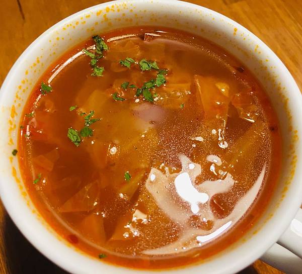 我很喜歡擴邦麵包早午餐套餐所附的番茄海鮮湯,單純的番茄味道,而沒有醬汁或是人工調味料的干擾,讓嘴巴喝到的只有最純粹的食物美物,果然還是簡單的最好吃。