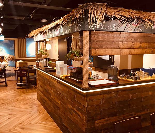 在老椰兄室內用餐空間的部分,走的算是熱帶海洋風,經由各式木頭建築的設計,塑造出類似海灘小屋的感覺,也給人一種輕鬆自在的度假感。