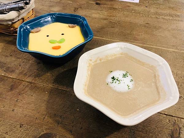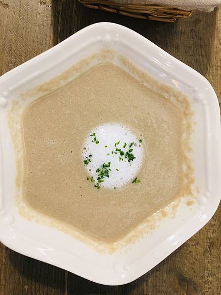 蘑菇濃湯則強調的是菇類特有的誘人香氣加上奶油帶出的絲滑口感,超容易咕嚕咕嚕不到30秒就全部喝完 XD~