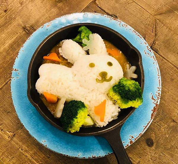 另一道兒童餐兔寶寶日式咖哩飯同樣在一端上桌就引起同行友人的驚呼,可愛的小白兔圖形讓大家拍照拍到停不下來,更重要的是因為這個可愛的圖形,可以讓小朋友更願意吃下滿滿的健康蔬菜~ 果然讓小朋友吃健康食物是要有方法的~