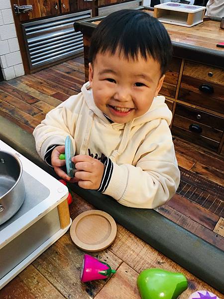 另外農人餐桌親子餐廳還設置了兒童遊戲區,裏頭包含了各式情境的小玩具 (e.g. 小朋友的小小廚房),除了小朋友可以在這裡盡情玩耍外,最棒的是大朋友也可以不受打擾的安心吃飯 (這超級重要XD) 。