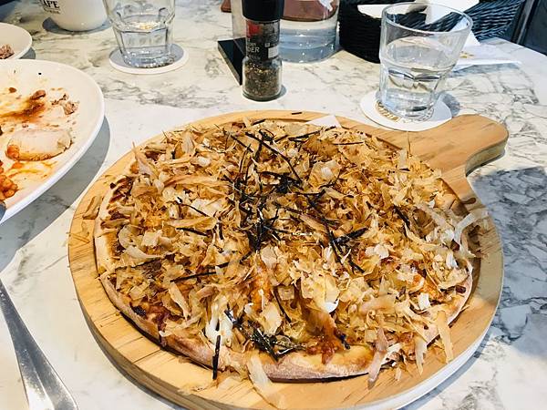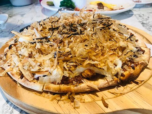 真的很難想像充滿日本風的照燒及柴魚風味會出現在Pizza上,這道和風照燒雞柳Pizza雖然在食材組合上看來很衝突,口味上卻毫無違和感,一口咬下就吃得到濃郁的照燒風味在嘴裡化開,再加上柴魚特殊的香氣及口感搭配,真的很難不愛上這道餐點~