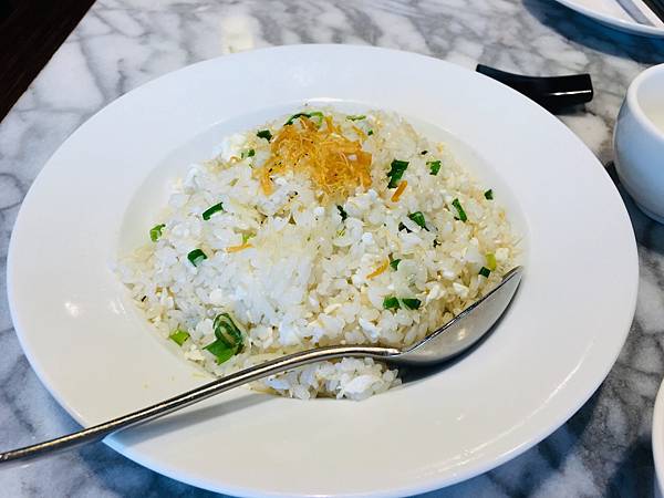 這天女王,小雞腿跟我到故宮晶華用餐的第一道餐點炒飯,基本上就很能展現這家高檔餐廳主廚的深厚功力:粒粒分明且水分適中的飯粒,搭配蛋白、蔥花等更是配料,創造出清爽的口感; 唯一要特別注意的是,這個炒飯的口味比較偏清淡,如果喜愛重口味的朋友可能就要考慮點別的主餐餐點來享用。